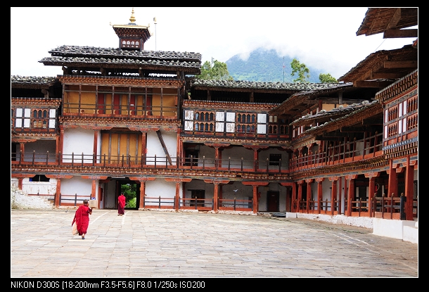 說它是這個地區的政教中心麼,稀稀疏疏除了前頭幾位努力工作的婦女之外,似乎也沒見到幾位官員,連僧侶也只在入口的時候匆匆一撇,這,人兒呢?在不丹參觀各個“觀光景點“的時候,絕對不用擔心找不到好角度拍風景,更不用怕鏡頭被討厭的人頭擋住,在這兒旅行,說孤寂也還真孤寂,因為我在這幾天,幾乎沒見到幾個觀光客呀!